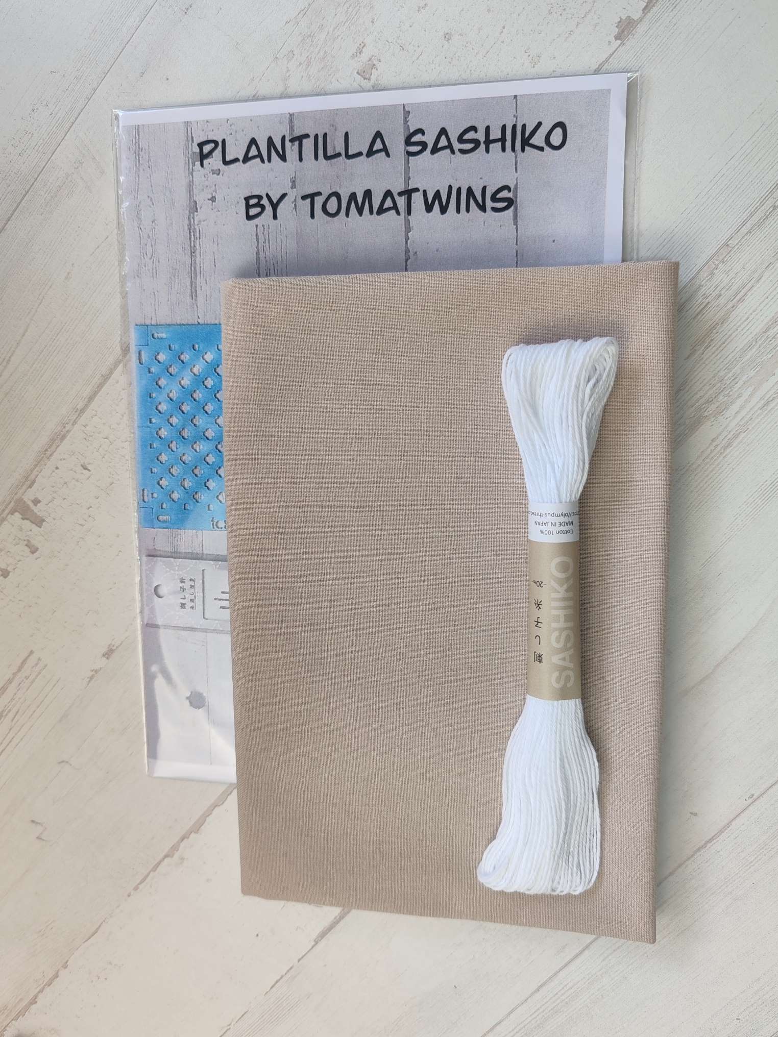 Tela de color beige con el gramaje ideal para coser sashiko.